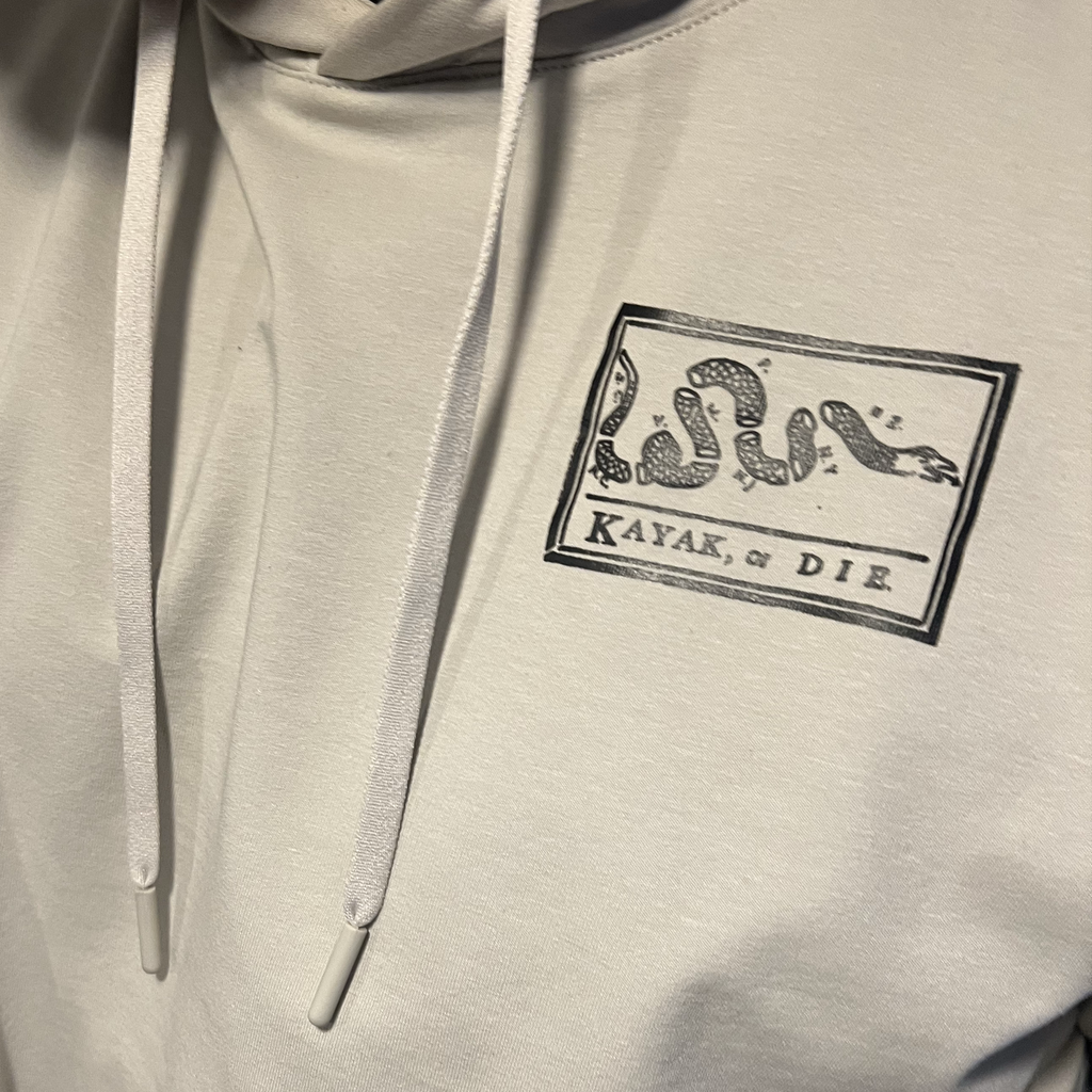 Kayak, or Die™ - join the revolution. Inspired by Ben Franklin's famous 1754 cartoon - "Join, or Die" snake woodcut.