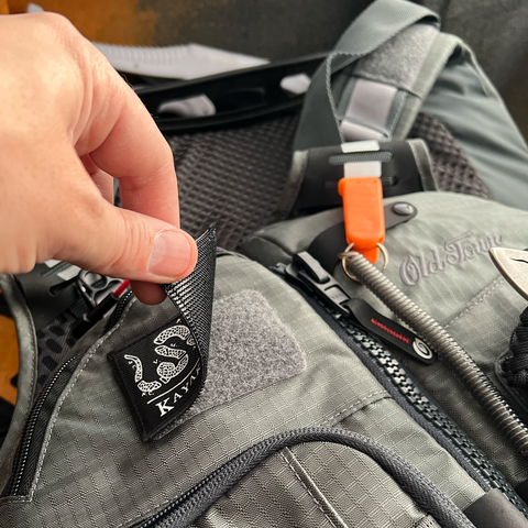 Our Kayak, or Die.™ logo is featured on a 3" x 2" black hook and loop patch. One patch included with purchase.