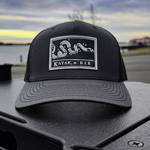 Kayak, or Die™ - join the revolution. Inspired by Ben Franklin's famous 1754 cartoon - "Join, or Die" snake woodcut.