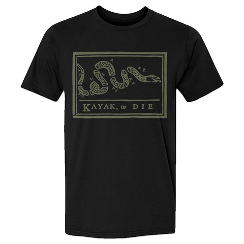 Kayak, or Die™ - join the revolution. Inspired by Ben Franklin's famous 1754 cartoon - "Join, or Die" snake woodcut.
